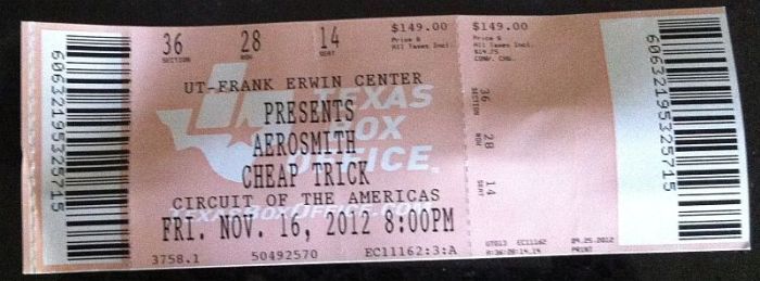 Aerosmith & Cheap Trick Concert Review, Austin, TX 11/16/2012 » ticket