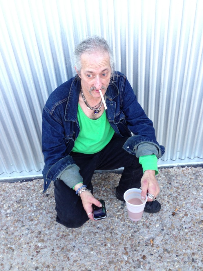 “Hey brother, can you spare a dime?” 105 degrees outside and he’s wearing a jacket.
