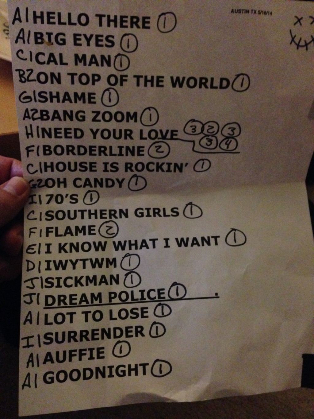 setlist given to me by soundman