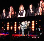 Then came Lionel. He’s still got it. His voice sounds amazing and he’s in physically good shape. Running and jumping around. Add to it his between song banter, obviously scripted, but still effective. He’s a pretty funny guy. They were about to go into Endless Love and he said he had invited Diana Ross to come sing it with him. The band motion towards side stage and started clapping and had everyone duped that she was coming out. He stated that the two of them had actually never performed the song live together but I found a vid or 2 of it on YouTube. They played the song, but only the first verse and chorus with the crowd doing Ross’ parts. And while the whole set was great, highlights for me were Truly and Sail On. They closed with We are The World and I’m pretty sure there was a typo on the lyric banner overhead (see pic below).