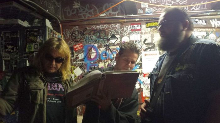 Tom Mallicoat and Glen Cook of Lethal signing The Book with Monkey Boy