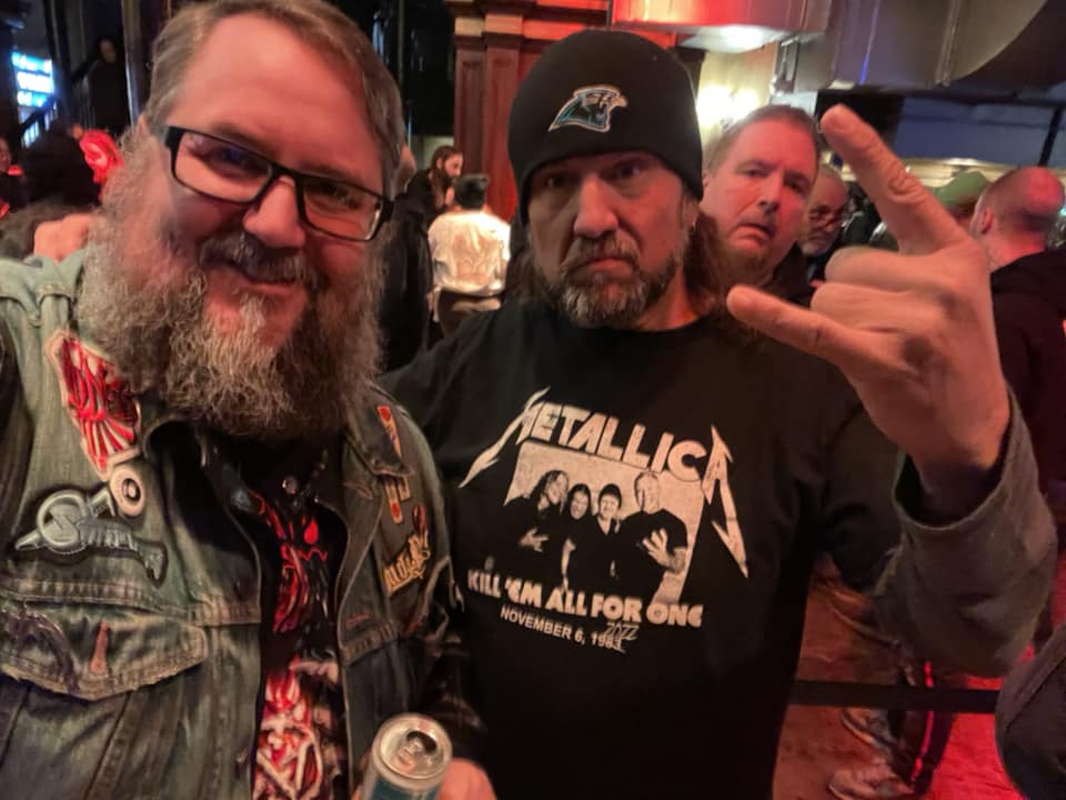While waiting for WASP to come on, Armored Saint’s Jeff Duncan strolled the balcony and seemed to try to be a bit incognito. As he passed by me, I said, “Got a minute to say hello to an old friend?” He smiled and hung out with me and another of his friends from the 80s for a bit. As we were standing there, he got a text from someone in Armored Saint that said, “WASP isn’t playing. Over capacity.” He quickly said his goodbyes and headed back to the backstage area as he didn’t want to get caught up in the mess that was about to happen.