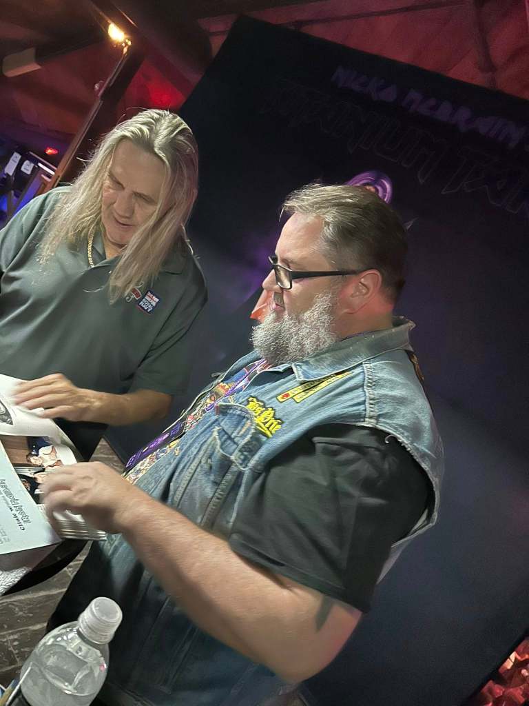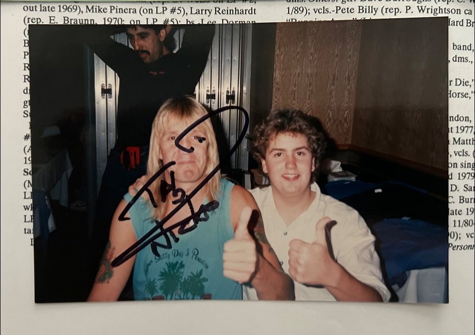 It was billed as getting “one on one time with Nicko” and only one item to get signed. Uh yeah. I was gonna try and work some mojo and get two items signed: The Book and the photo of us from 1988 for framing purposes. Nicko would engage with the folks almost as much as anyone wished to. Some folks opted for a quick sig and a photo and some engaged with him more. It was nice to see altho it slowed things down a bit. We had nowhere to be, right?