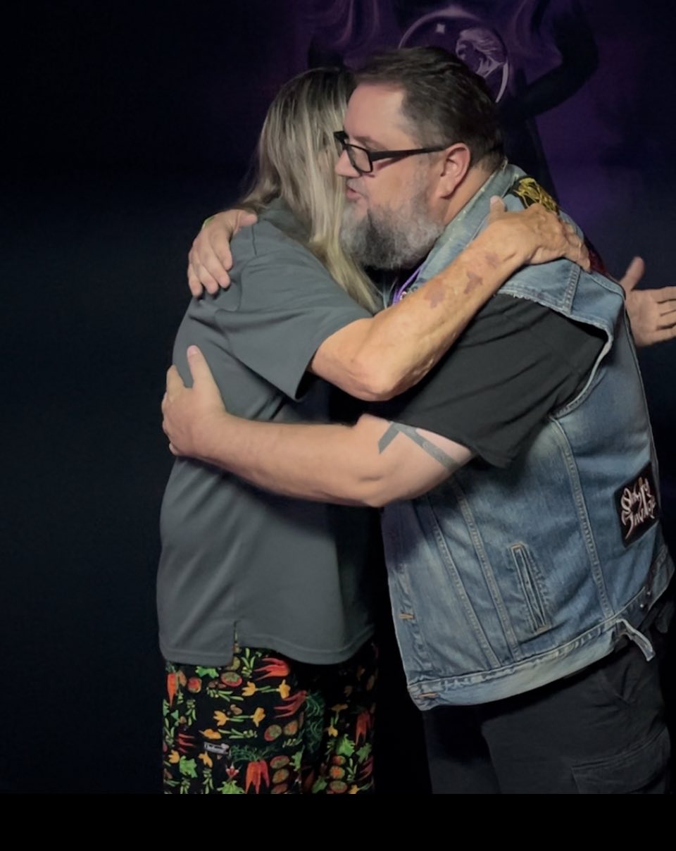 My San Antonio buddy Ruben and his lovely wife Jasmin were right behind us and get their stuff signed. He also had Nicko sign his leg which hopefully got tattooed in today.
