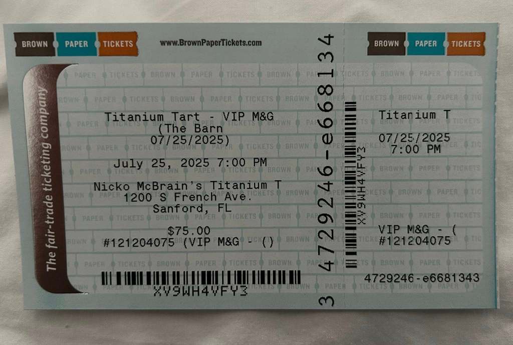 Flash forward to just a few weeks ago and I see a post online about Nicko’s Titanium Tart playing 4 Florida shows and offering a meet and greet. I had to do it. I sent the info to Kelz and we got on a long phone call to discuss logistics. Just based on price point, I decided to fly into Raleigh where he is and we’d drive down to Sanford, FL. BUT…we wanted to make sure we were able to purchase the meet and greet which was to go on sale a couple of days later. We got the tix dnd I booked my trip and that was that.