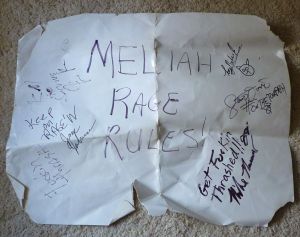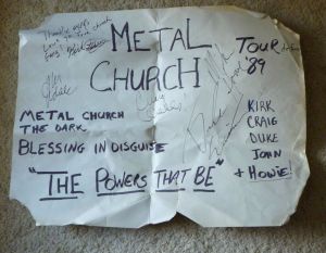 As you have read before, I got to see Metal Church and Meliah Rage on the Blessing in Disguise Tour in 1989. I found the banner that I had made for the show that I thought was long gone. Signed by both bands!