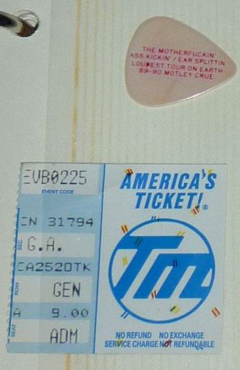 Crue stub and Nikki Sixx pick. Was always a little miffed that the ticket-taker gave me the short end of the stub.