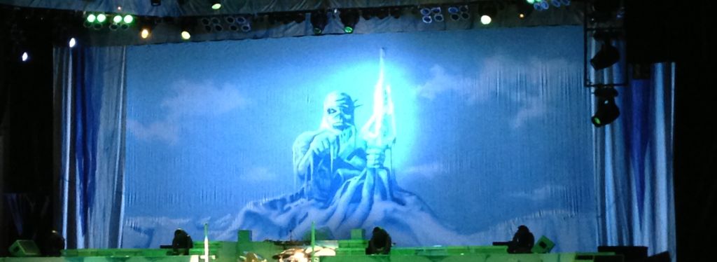 Now, the three of us all saw Maiden together for our first time in 1988 so that made this reunion even more special. Maiden hits the stage with Moonchild and run through their set with ease. Bruce was as energetic as ever and the band sounded great. The mix could’ve been better as Dave and Adrian’s solos seemed low in the mix. We were just off of center not far from the soundboard. Steve was low as well. I’m still amazed that Nicko can play like he does. His right foot is just as awesome as it ever was. Adrian’s solo were great but Dave’s seemed a little off. Seems like he’s decided to change some things up over the last few years. Of course Jannick Gers is still in the band much to my dismay. I’ll say it again that I can’t stand that guy. Whatever. Bruce’s vocals were really strong and clear. The only time I saw him struggle was at the scream in the end if Aces High. He knew he couldn’t hit the note and just winged it. No bother. The dude has still got an incredible set of pipes unlike most if my other favorite older singers. Bruce still can do it live. No surprises in the show. It’s the same setlist as before, which is a bit unfortunate. I understand that their set changes are choreographed, but hell, just throw in some odd numbers and not worry about the big corresponding backdrops.
