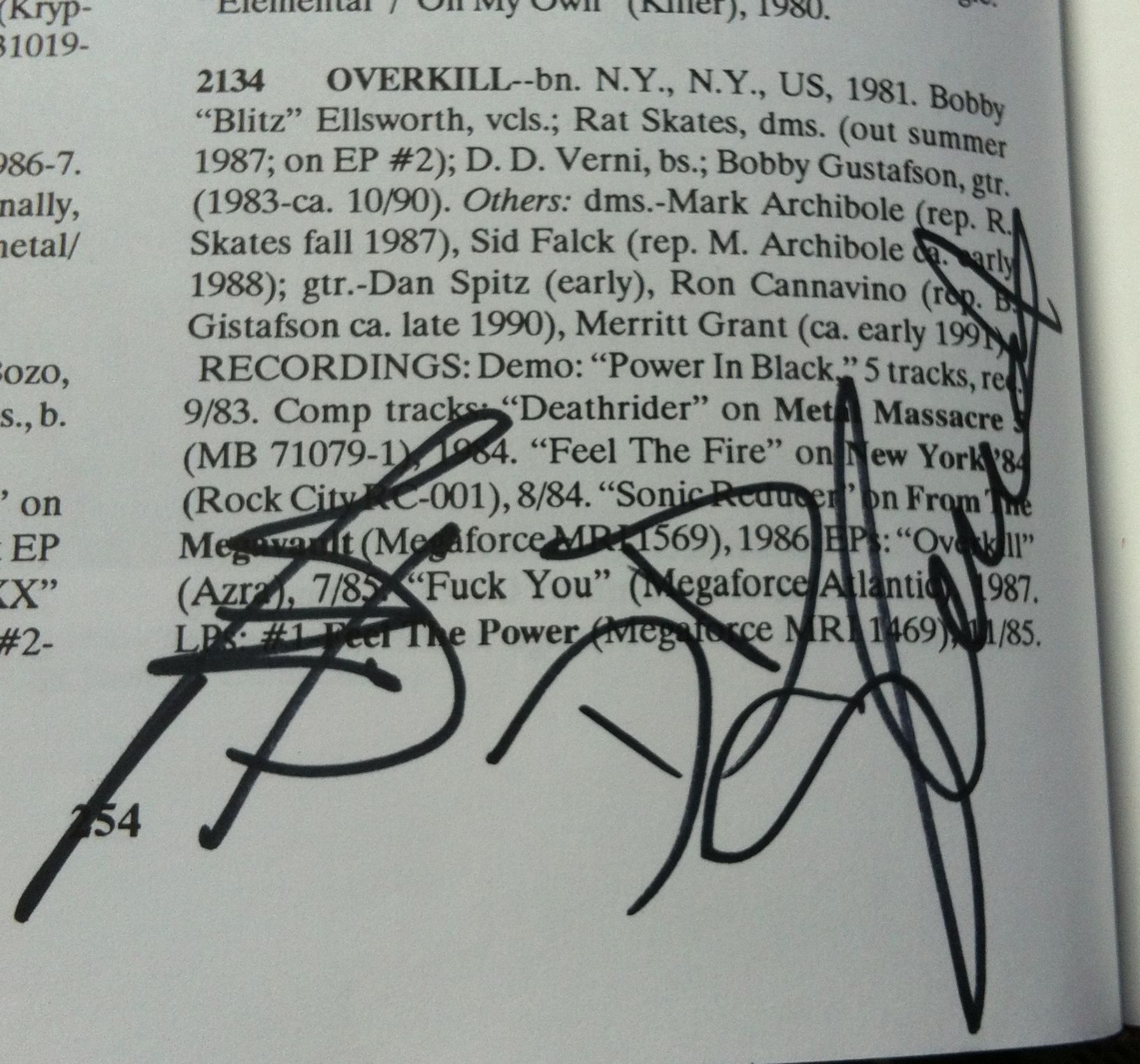 There was a guy and his son hanging out as well who had made a nice huge canvas screen print of a current Overkill photo with their logo on it. When those guys rolled up, they signed it cheerfully. I had Bobby and DD sign the book and got the usual question of, “What the hell is this?” Right after Overkill headed to their hotel, Gene Hoglan came out of the venue and I spoke with him for a little bit. Ten years ago I gave him a ride from his Strapping Young Lad show to go see Nuclear Assault at another venue. We laughed about shoving his huge frame into my little Saturn wagon.