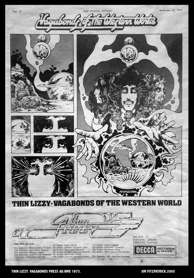 the Vagabonds of the Western World album cover and gave me permission to post the entire thing on my site. I first corresponded with Jim 10 years ago when asking permission to use one of his Phil Lynott images as a tattoo, which he gracefully obliged.