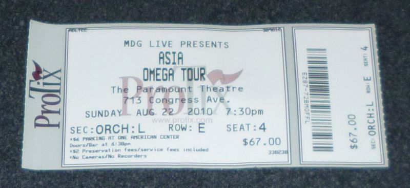 Overall the show was better than I had expected. The band took a 15 minute break mid-set and the whole show was over at 9:45PM. I was very glad that I went and it was worth the ticket price for sure. So…Thanks Kevin. Thanks Asia.