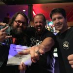 Once there, the first thing I had Ken sign was The Book. Obviously he’s got numerous entries in there but I wanted to have him sign on the Chastain band photo. I already head Leather, David and Mike sign it in recent years and Ken was the final piece. Michael Gilbert, the only other original member with Eric AK, signed my Doomsday and Flotsam (2016) LPs. I had gotten his and Eric’s signatures in The Book a few years back. Added bonus was Michael Spencer being back in the band on bass. I had him sign in the Sentinel Beast section. Score! Of course I had a stack of LP covers for Ken. It was really cool having him tell stories about each of the bands. I had the rest of the band sign the 2016 F&J LP as well and then I made my exit off of the bus to let them rest up before their show. Added bonus, I got to hear 3 rough mixes from their upcoming album while we were on the bus. “Want to hear some of the new album?” “Is that a real question?” It sounded killer and Ken’s on drums for that one, too. I also asked if they were playing Der Fuhrer from the debut LP. Eric said they sound checked with it but didn’t plan to play it. “We’ll add it for you. Thanks for dinner.” SWEET.