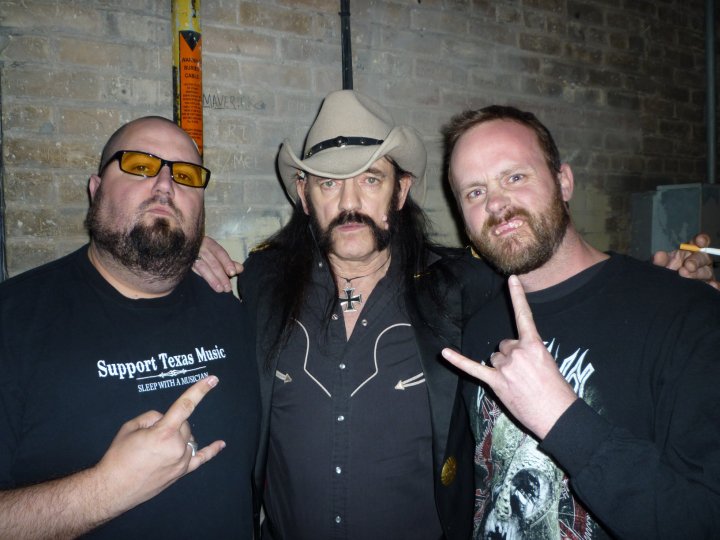 I moved to Austin, TX in 2006 and after tonight I will have seen Motorhead 4 times since I moved here. We tried to get this photo with Lemmy 2 years ago and didn’t get it as I was balled up on the floor of my bathroom from a kidney stone. Marco was at a titty bar with Lemmy trying to call me…no go. Last year we got backstage at the Motorhead/Rev. Horton Heat show and I thought I’d get the photo done, this time without Marco being in town. Again, no go. Lemmy was elusive once again.